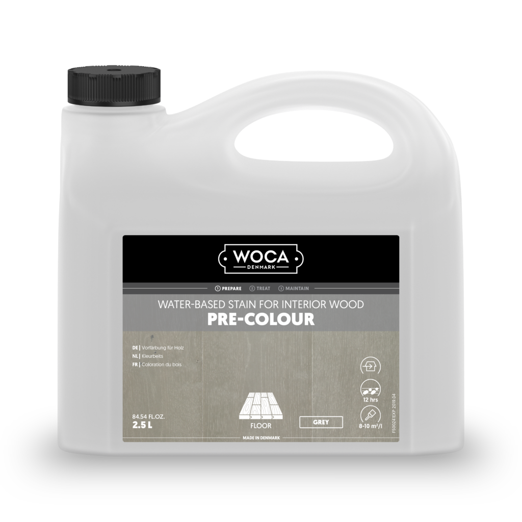 Pre-Colour is a water-based stain for unfinished and sanded interior wood surfaces, such as floors, stairs, furniture and panels. The stain colours the wood and enhances the natural wood grain.
